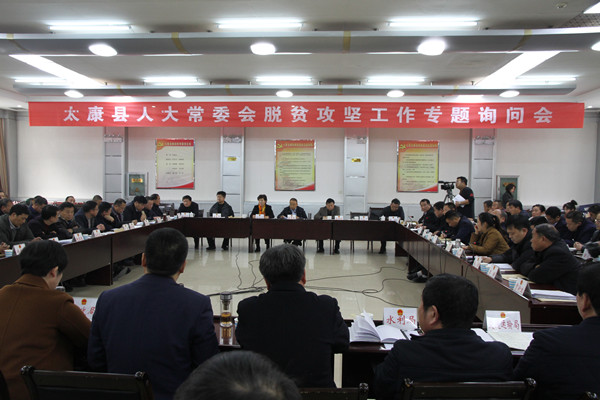 为确保脱贫攻坚工作专题询问会质量,县人大常委会制定了《太康县人大常委会关于开展脱贫攻坚工作专题询问实施方案》,会同县扶贫办等部门,认真拟定了询问题目,16位常委会委员就提高群众扶贫政策知晓率、提高特困人员集中供养率、完善农村路网、保障贫困户饮水安全、保障贫困户住房、光伏发电等扶贫政策落实、加强扶贫资金精准使用和严格监管、激发贫困户内生动力以及力戒形式主义等脱贫攻坚相关问题进行了询问,县政府副县长张国庆及县扶贫办、县民政局、县交通运输局、县水利局、县住建局、县卫计委、县教体局、县供电公司、县工信委、县文广新局、县国土局、县农牧局、县金融办、县财政局等14部门主要负责同志先后应询作答。专题询问准备充分、形式新颖、内容充实、氛围良好,问到了难处,问出了压力,个别单位负责人“红了脸”“出了汗”,达到了预期的目的,全面展现了我县广大干部对脱贫攻坚工作强烈的政治责任感和事业心,进一步凝聚共识、强化合力,必将有力推动我县脱贫攻坚工作顺利开展。