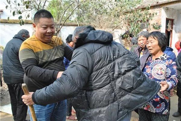 70岁的王继堂因偏瘫落下后遗症,日常走路一瘸一拐,当日上午,他拄着拐杖也来到现场。看到王继堂过来,王军会赶紧上前搀扶。“你咋不在家等着啊,我准备一会儿给你送过去。”王军会说。随后,他给王继堂挑了一件大号蓝色的棉衣,然后小心翼翼给他穿上。“真暖和,我正愁着没衣服穿呢。”王继堂摸着身上的新棉衣,感动得鼻子一酸哭了起来。